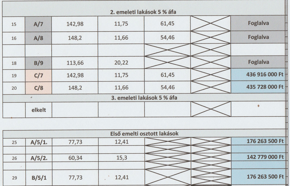 Az „A” épületben 7 db lakás, a „B” épületben 14 db lakás, a „C” épületben pedig 11 db lakás kerül kialakításra.